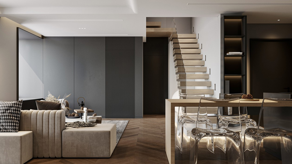 軟裝設(shè)計(jì)最大限度的保留了客戶空間的開(kāi)敞性,開(kāi)敞明亮的空間五臟俱全,很好的傳達(dá)了住宅的新居住模式。